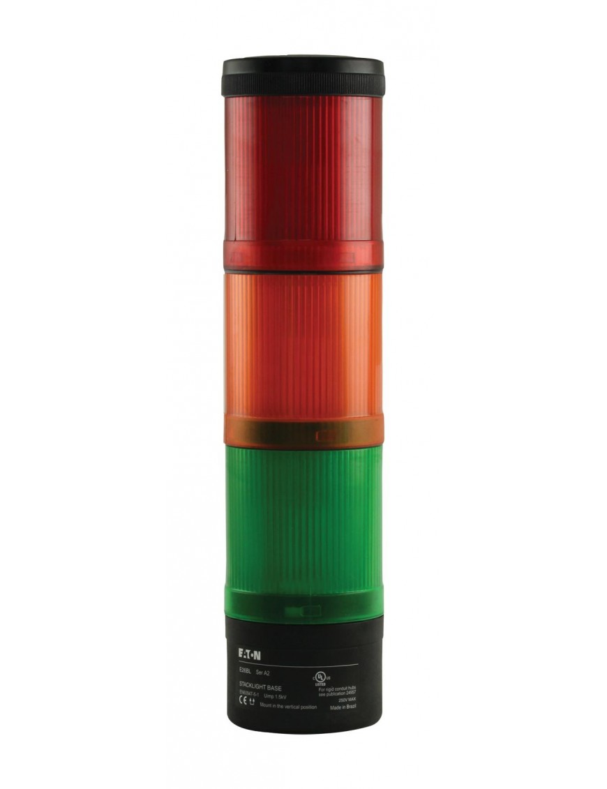 STACKLIGHT, 3-HIGH ASSEMBLY, 120V, INCANDESCENT, GREEN/AMBER/RED, E26 SERIES